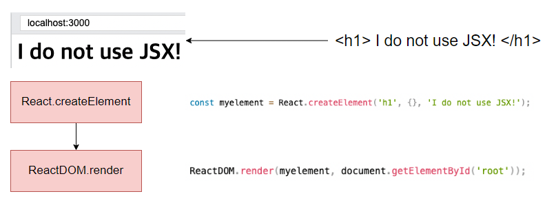 JSX는 createElement를 쉽게 사용하기 위해 사용한다. 모든 UI를 만들 때 마다 createElement를 사용해서 컴포넌트를 만들 수는 없다. 그러기에 JSX를 사용한 후 그걸 바벨이 다시 createElement로 바꿔서 사용한다.