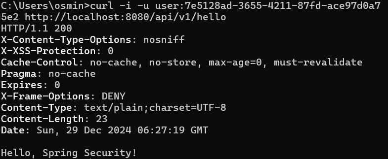 curl -i -u user:[비밀번호] http://localhost:8080/api/v1/hello